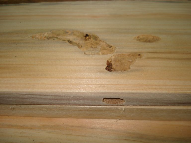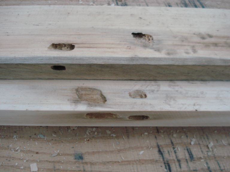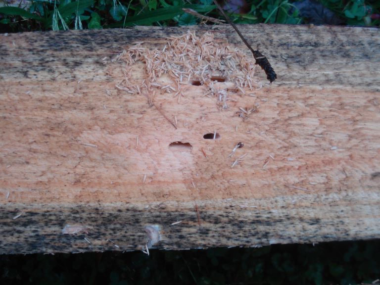 The 2nd pic is from work, I ran into some borer damaged wood. It is a good example of the first "key" when looking up borers. The first question is "Flat headed or round headed?" A round headed borer makes a round hole, a flat headed borer makes a rectangular hole. Pickets.JPG