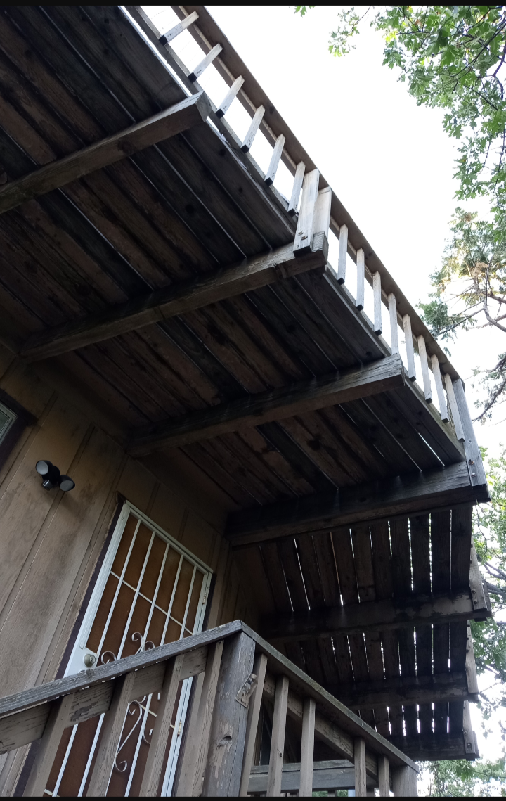 Here is a closer shot of the beams. They painted the whole house and deck probably 15 years ago likely right before my family purchased it. The peeling paint makes the boards look worse than they do in person.