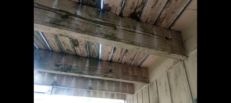 I do fear there may be some rot on the top of the center beam where there are sistered 2x10s, but the rest have structure. The bounce on the deck boards is not as much as you would think for such a span but it still isn't right for sure. Most of the movement is from the rotten boards moving around the nail holes. Yea. Super safe currently.
