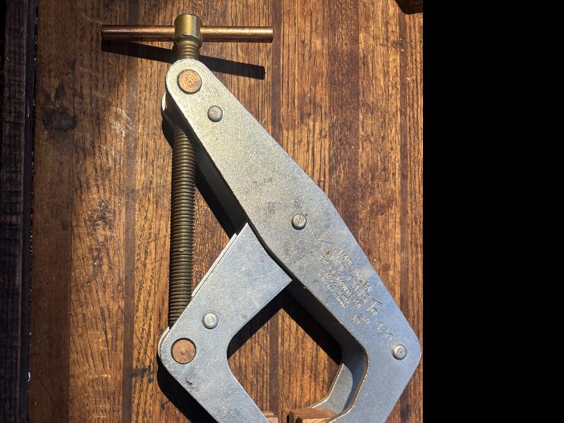 I brought out this Kant Twist clamp that’s been kicking around the garage for who knows how long. It’s for holding two pieces of wood or metal together while screwing or welding. Don’t recall ever using it, maybe I grabbed it at a yard sale, but if it was around when building the cabin I would have used it 1,000 times. IMG_6218.jpeg