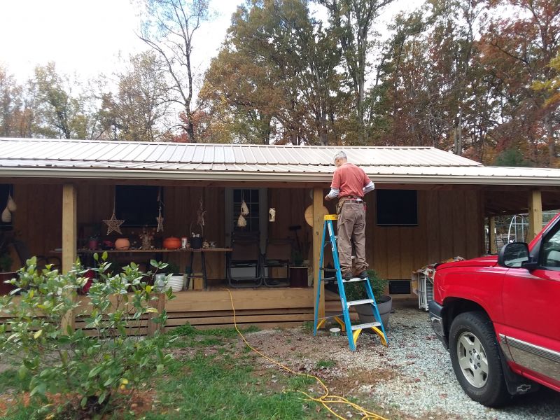 Quoting: itsadamnshame I was thinking of using #30 felt or house wrap and apply it over the smart side and cover with 4x8 RR, 12" wide T1-11. I added a 10 ft. overhang all around the cabin to keep it as dry as possible.