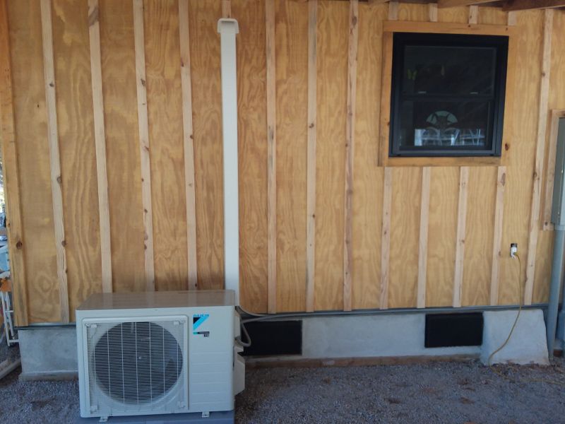 I can get a Mr. Cool from Costco for $1800 12k or $2300 for a 1800k. My brother in law has a HVAC guy that will install a Daiken for either $3000 or $3500 I forgot what size. I tried to get the shed dealer to house wrap/ insulate under the cabin with no prevail. I insulated the walls with rock wool and the ceiling with the pink stuff.