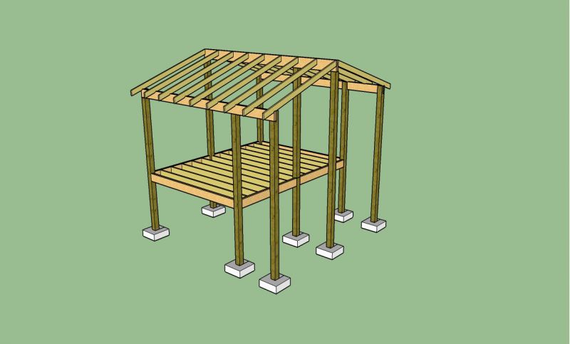 Doodling... The posts are 6x6 treated on footings. The walls brace the posts as they continue beneath the floor, there is not a connection there as with a pier and beam, this is rigid.