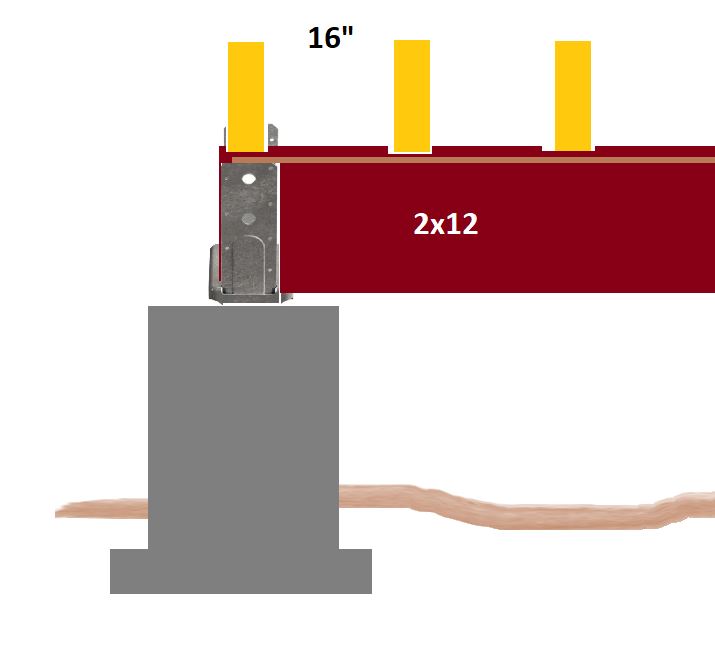 The beams are bolted to piers with simpson post ties for high loads using bolts -