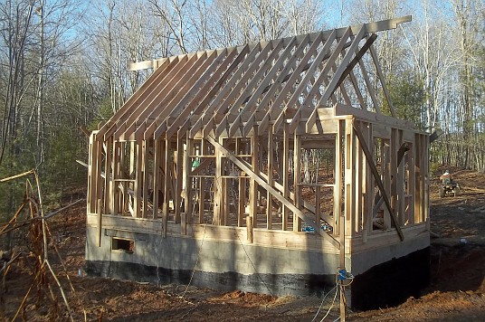I thought the best way to do this would be to build on concrete pads/blocks up off the ground. Then it would make it easier to possibly be moved someday if I wanted to build out there.