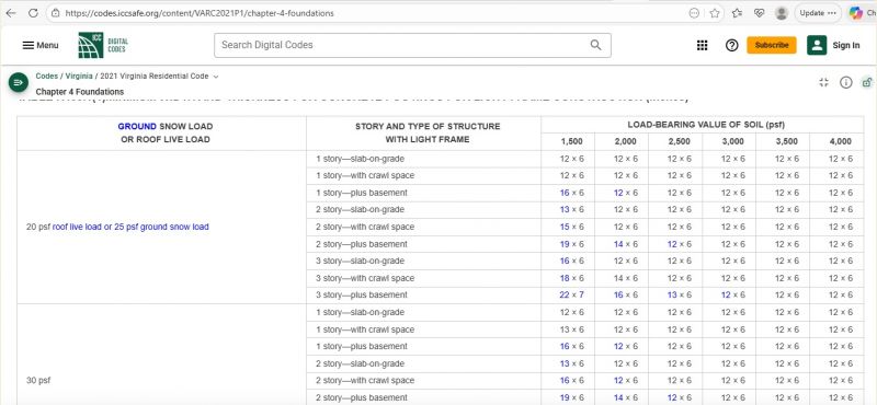 Fwiw and ime a cabin notion becomes bigger and far heavier than originally thought. And we continually get new members with pics of post or pier problems, often on a new to them cabin....... You pretty much get One Shot at getting your 'foundation' right, and minimum specs is just that, min.