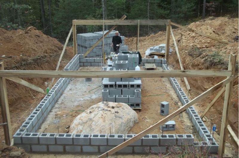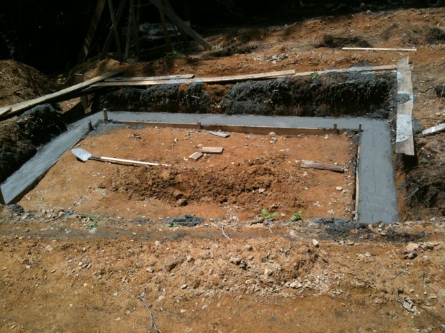 I found a couple of pics, was hoping to find one of the trench, 2 runs of 1/2" rebar on wire "chairs" to hold it off the bottom. That is our "ready to pour" inspection point. This is just after the pour and foundation starting. A little forming where we needed to hold the edge. Vertical rebar to tie from footing to your anchor bolts ties it all down to the footing for wind hold down. Footing1.JPG