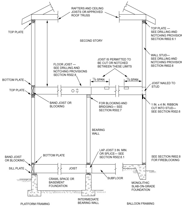 With 2x6 walls I would notch in a 2x6 ribbon for the loft joists and avoid all those jacks. Look at the right side 2nd floor joist support in the fig below. That is a holdover from balloon framing, with 2x6 walls I let in a 2x6... Do fireblock each stud bay between floors, the downfall of balloon framing was fire could race up those tall hollow walls... thus the call for blocking at each floor.