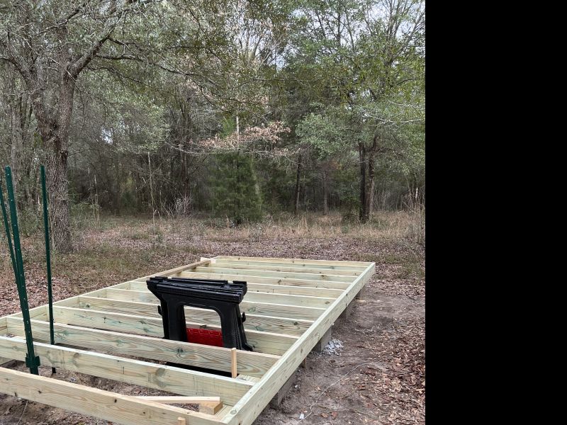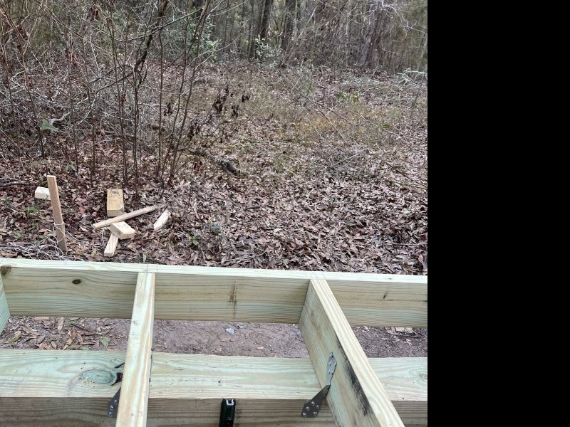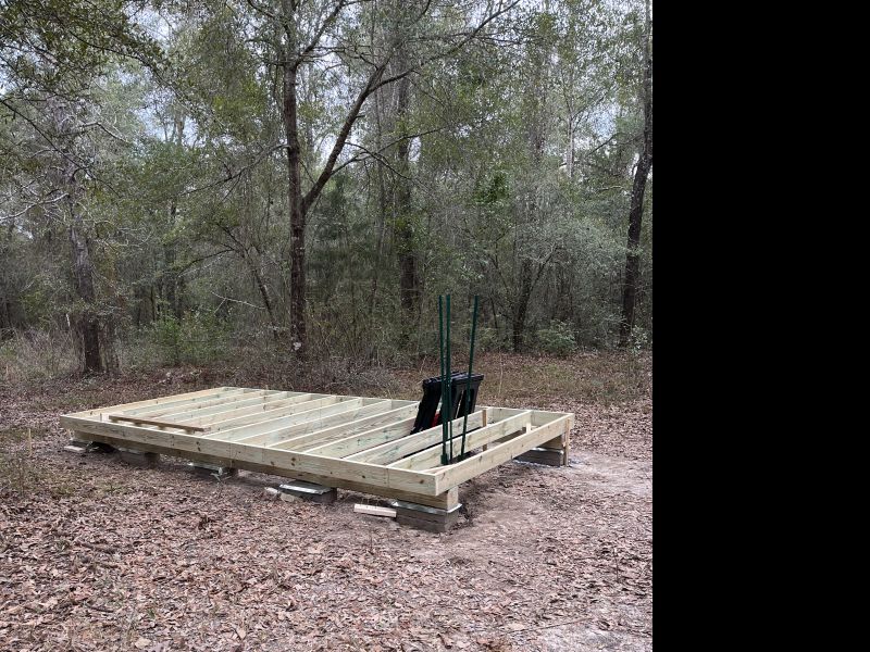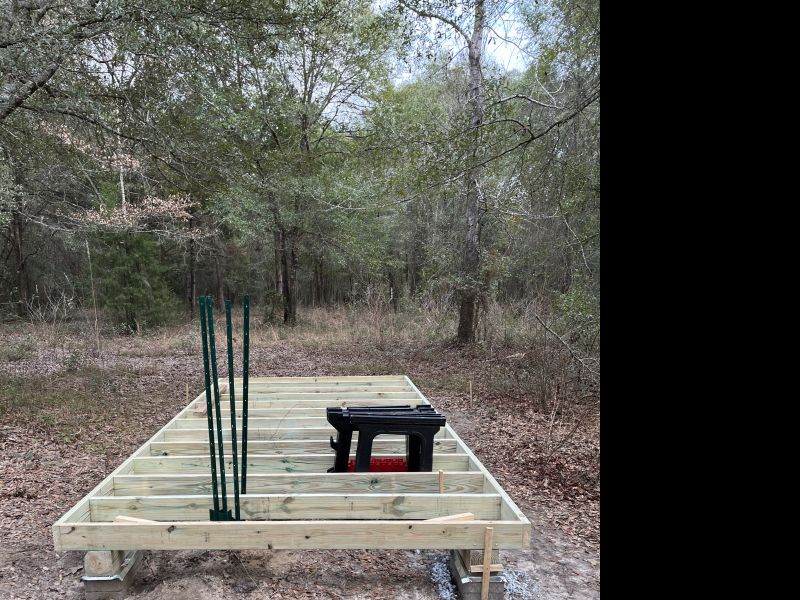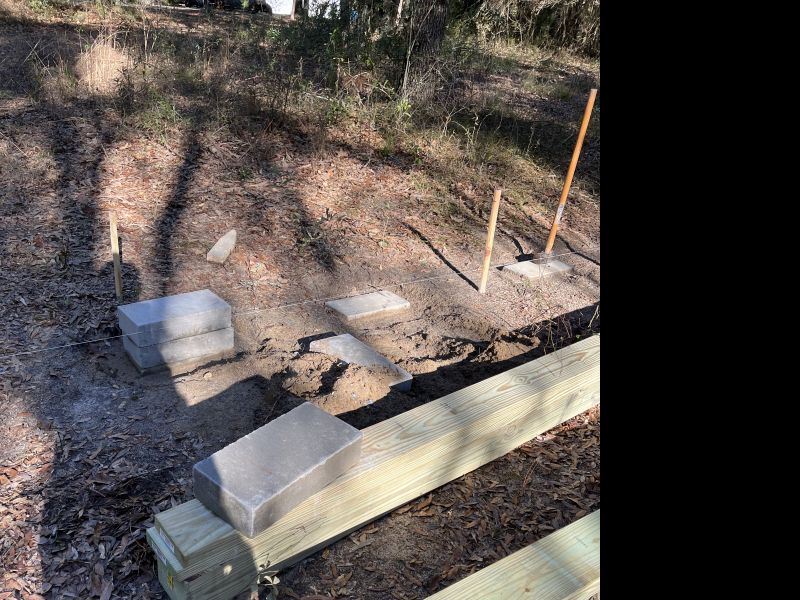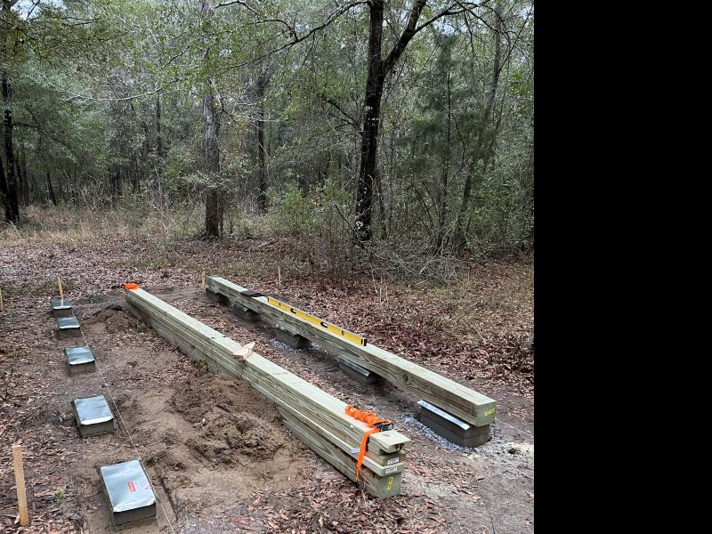 You can probably tell from pictures, but the foundation is 6x6 posts sitting on solid concrete blocks. The blocks were leveled and sit on compacted, crushed stone. The posts do not sit directly on the blocks. I cut 10” roll flashing and bent it to form a termite barrier and barrier between the posts and blocks. The posts sit on the blocks well, but I did have to slip a shingle or two under the post on a few blocks. Every thing leveled up nicely.