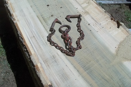 Attached is a pic of a set of chain dogs, aka hammer dogs. They are not as fussy about size range but then you need a hammer to drive them. If you find one with a larger ring, chain and single hook it is a ring dog, cut a pole for the ring and it is a cant hook for the woods.