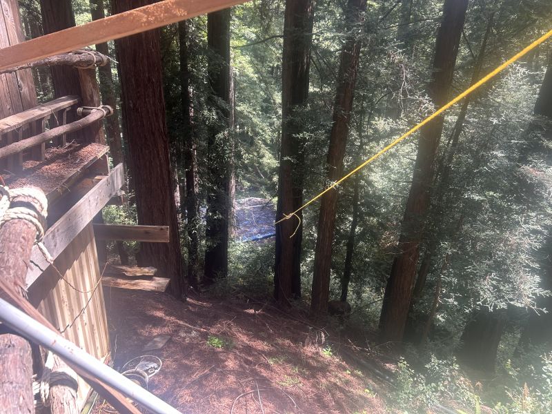 I’ve decided on the final route for cabin to shop rope through the trees and down the hill, see mock up. My plan was/is to attack a milk crate and pulley stuff up and down. But I got to thinking about ski chair lifts, why not just haul my ass up and down too?