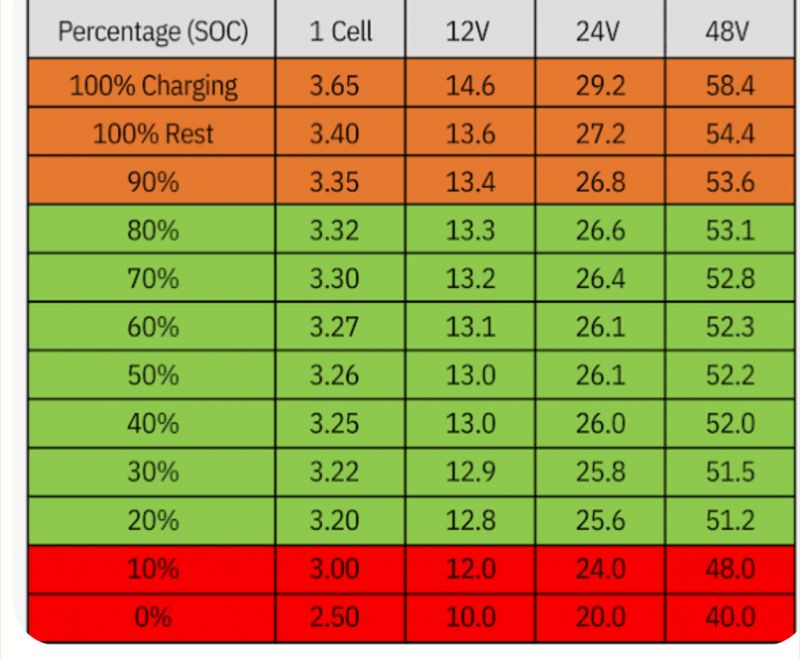 Small correction Paulz,  I haven't said that Voltage is a poor indicator for any Lithium-based battery tech and some will argue that as you pointed out.  Simply put, it is the only way to see your State of Charge and Depth of it.  By depth I mean the saturation level, s opposed to the surface level which requires a slightly different way of accounting as opposed to FLA for example.  The accuracy & calibration of the measuring device(s) is critical for this, so that the device reports actual voltage as seen on the batt terminals, taking into & corrected for losses along the wire - the proverbial offset correction.