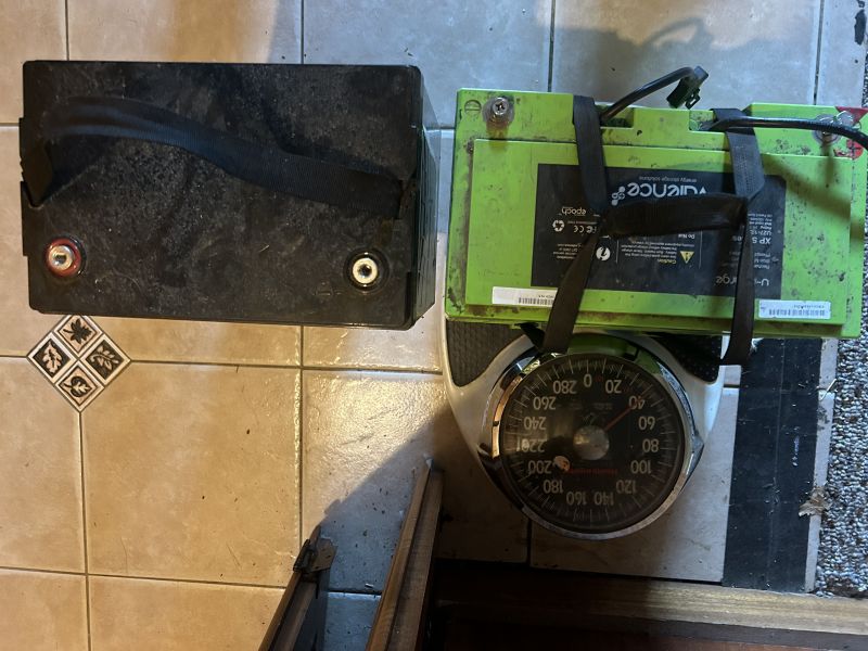 Iirc the old 100ah 'marine/rv' deep cycle bats ran 68-72ish #s and my LFP (both at the cabin now) were spaced about 38? For just 'feel' moving them they are more comparable to the little LA garden tractor bats. Last time I moved an old LA marine type to recycling I sure was glad I wasnt messing about with them any more!