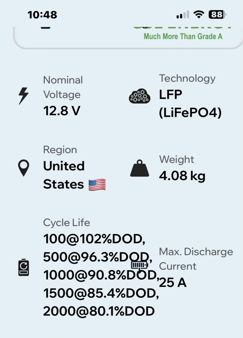 Ha, yeah I have a couple of those big batteries around at the cabin for the tractors. Like carrying a ball and chain at our age. Also have one of those garden batteries here, I’ll check it later today. Don’t know why my new 100ah Lfp (Humseink) is only 20lbs. Cheaper materials maybe, they were only $100.