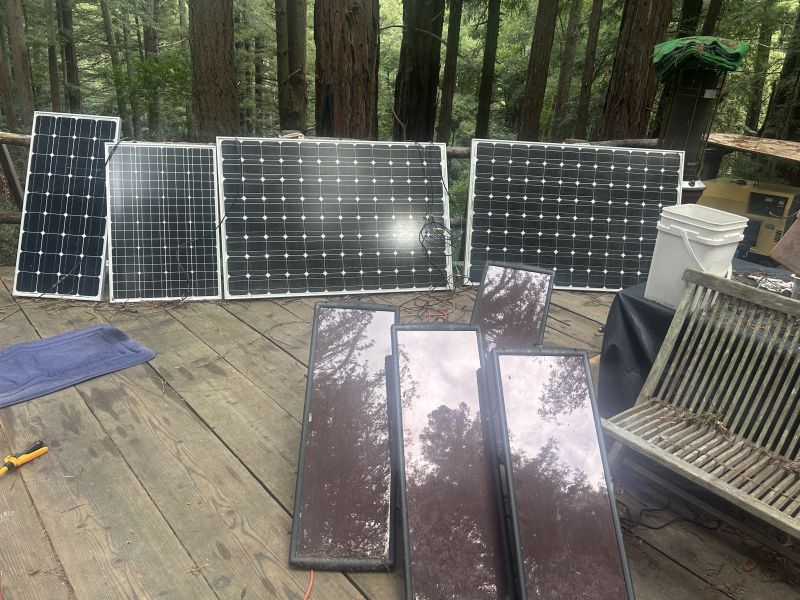 Holy cow, 8 amps charge in January in no sun. My other side project, besides trying to get the TV antenna to work through the trees, has been jumpering in all my old spare solar panels. The main arrays above the cabin, 4 of which branches went through, are putting out the bulk, about 5. Then the old array down on the shop roof did almost 2. The misc junk on the cabin deck got the 8 total. Generator may even get a rest break. Come on spring! IMG_6385.jpeg