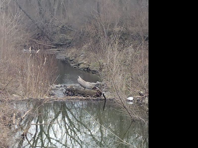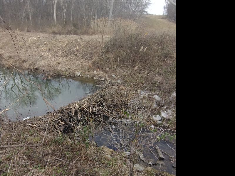 Recently noticed that the water level got higher than normal. Usually its only a few inches to maybe a foot deep. I have 4 pipelines behind the cabin where we hunt. And the oil company recently cleared the overgrowth with a whopper chopper on a bobcat. I couldn't figure out how everything got down in the creek. We haven't had major rain in a while. Anyhoos, found the blockage and kind of cleared out one edge with whatever we could reach out with. The water level dropped, but not all the way. Well since then it seemed the blockage kept coming back. Turns out the beaver(s) keep rebuilding it.  I've never seen a beaver around here. The closest I know of is Beaver creek about 13 miles away. Photo taken off the bridge