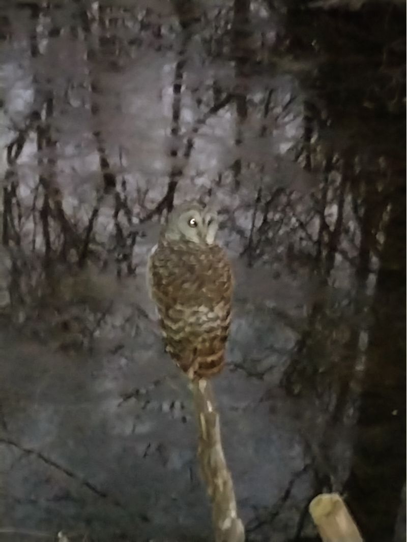 I was feeding the dogs and chickens earlier and notice one of my neighborhood owls watching me. I walked up to it when I was done, and took a couple pics and videos with my trusty crusty lens phone cam. I got within about 4 feet before it took off.