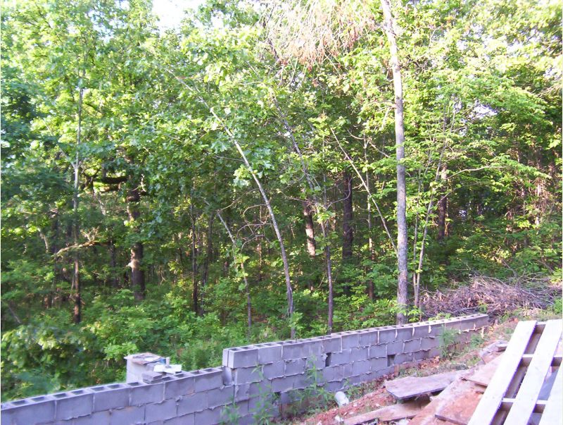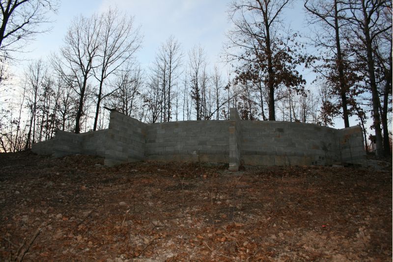 In 2007 we broke ground, had a road put in and terraced of a chunk of land from the hill. We built a 92' block retaining wall and backfilled that to create a nice level area for a future garden.