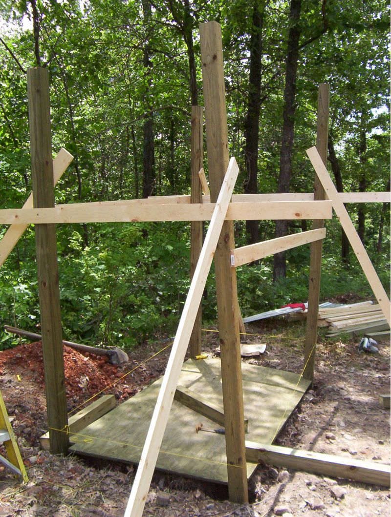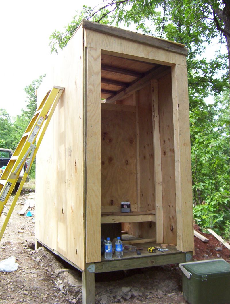 At the same time we put the wall in and had the dirt work complete we built the very first structure, the all important outhouse.