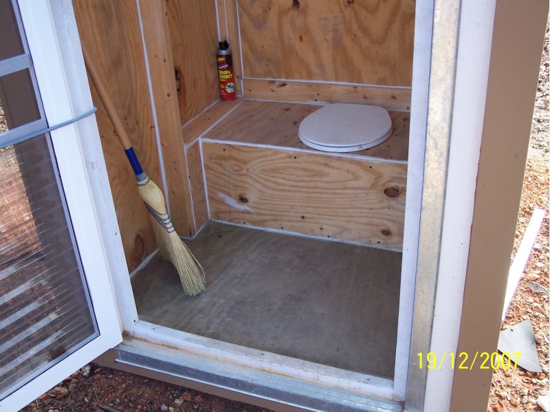Ended up so much better than a luggable loo. After 18 years even I am shocked how well it has held up. Once it reaches capacity we will likely convert it to a composting model. I have since framed in a bathroom inside but as stated in an earlier post, that's for the ladies. 100_4988.JPG