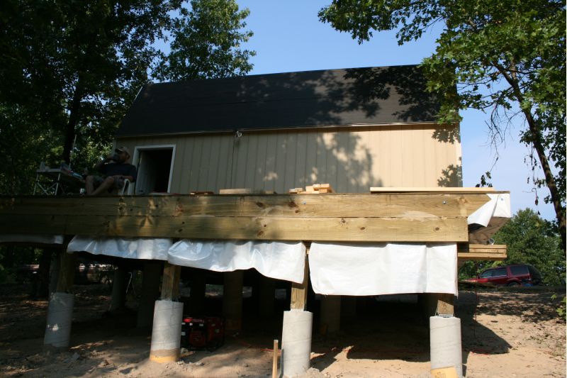 Both lower and upper cross framing were 2x10 treated lumber and the sub-flooring 5/16th treated ply. We insulated the cavity underneath. IMG_6157.JPG
