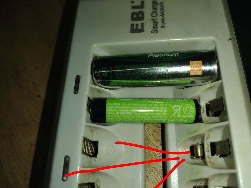 Just took a look at your charger pic. It looks like my chargers. The little tab, is the spacer for AAA. With mine you have to charge them 2 at a time. Next to each other to complete the loop. It can be a AAA with a AA like my pic. Screenshot_20260120.png