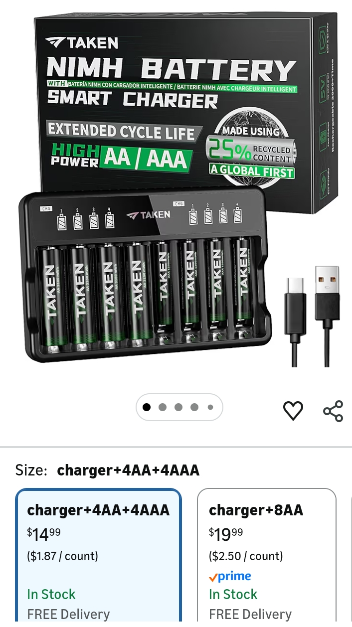Quoting: darz5150 I just ordered this combo pack. It comes with a USB c smart charger and 4 AAA & 4 AA batteries
