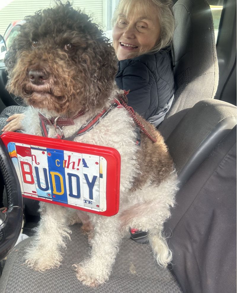 Speaking of the dog, a friend just gave us this plaque. It’s made out of old license plates. He said he made it but another guy told me they sell them on eBay. Whatever, Buddy don’t care.
