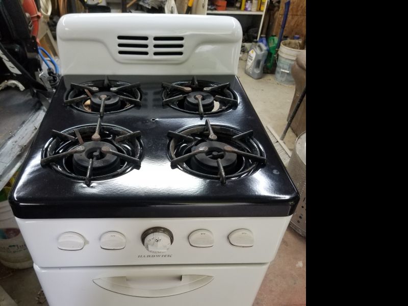 I looked for the perfect stove for many months on marketplace. Then one day I found it. A 1950s-60s apartment sized gas stove with 4 burners. There's not even a plug on the thing. Paid $50 for it in 2019.