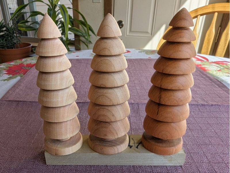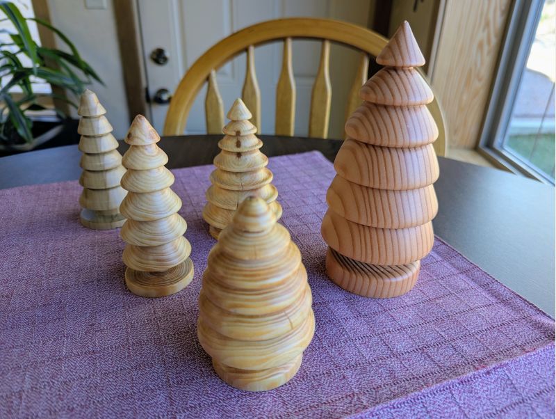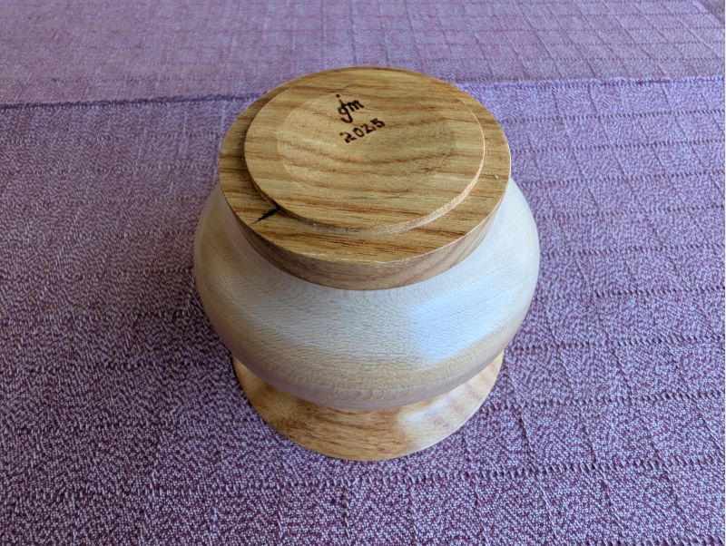 Some of the wood was from a freshly cut branch of a pine or ours. (turned first to a rough shape, then dried in the microwave and turned a second time for finishing)