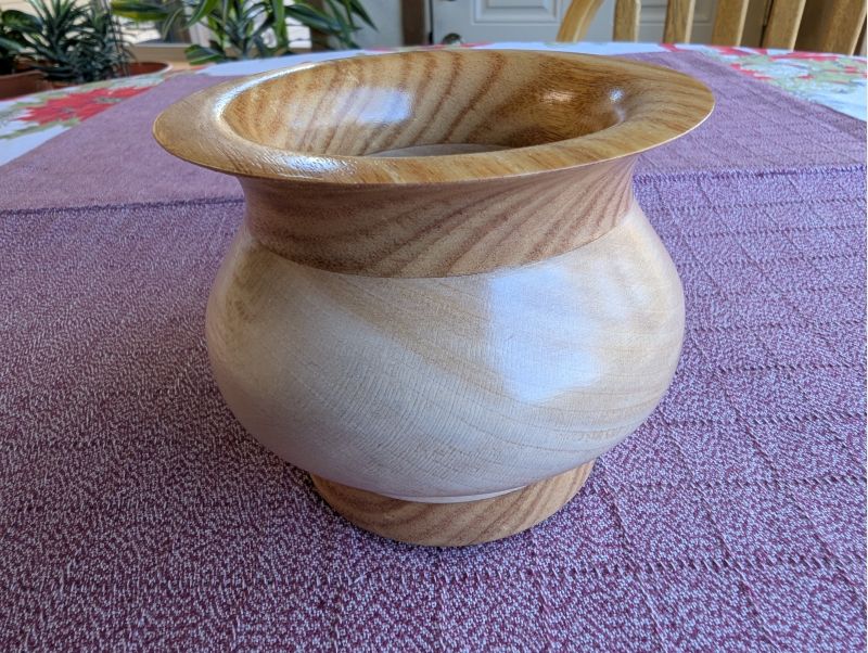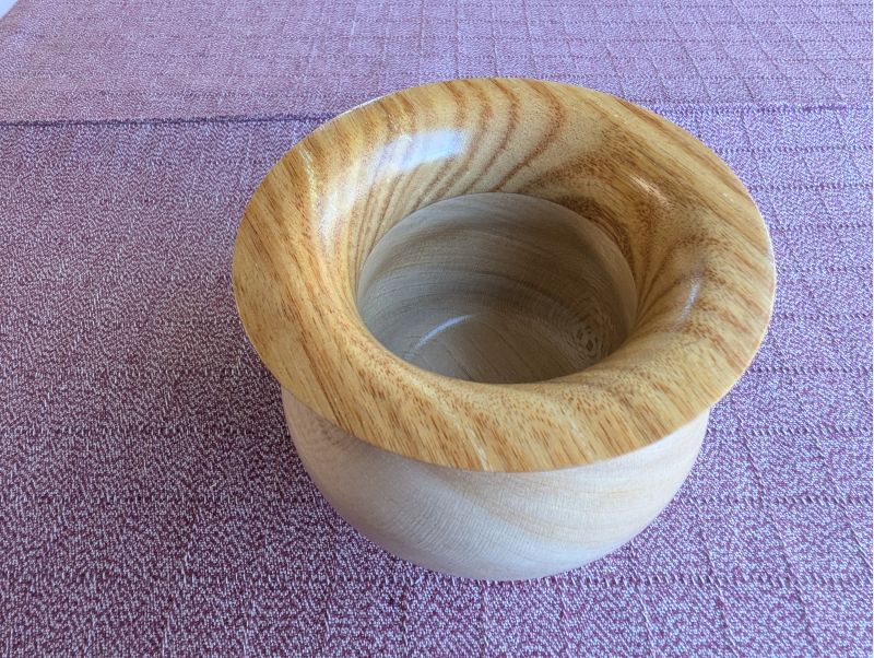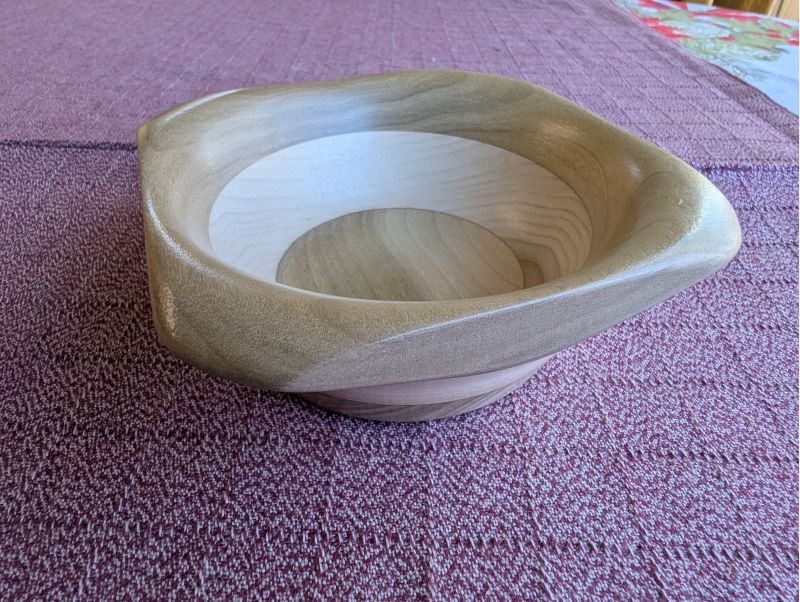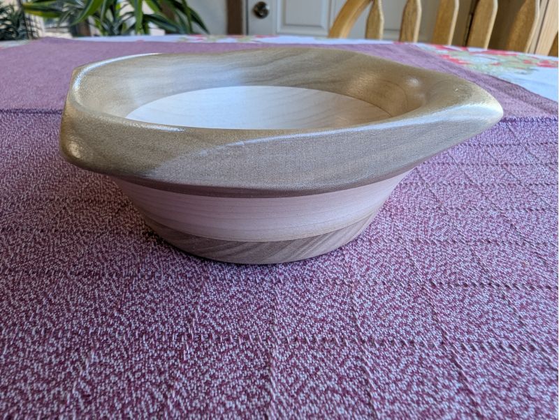 I've attached some more images. That's a small bowl I did as a test. It is three pieces of poplar glued together. The top snd bottom were very greenish poplar with the upper slice virtually 100%. I think it actually looks good with the greenish hue. About 4 inches across the flats.