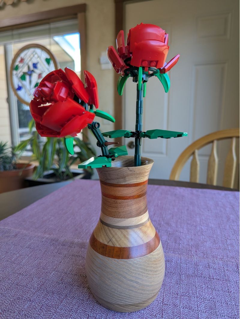 Roses by Lego kit #40460. Wood turning by yours truly, for Karen, my wife
